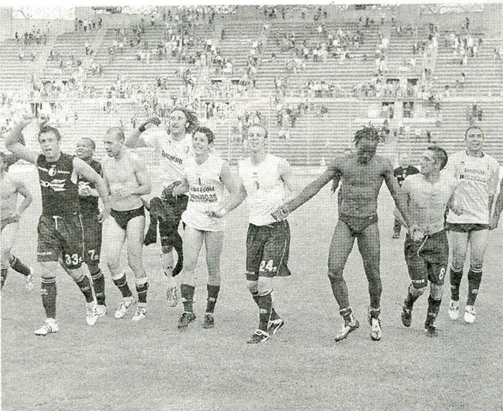 Modena - Portogruaro 3 - 1 (l'esultanza dei giocatori del Modena al termine della partita per la raggiunta salvezza)