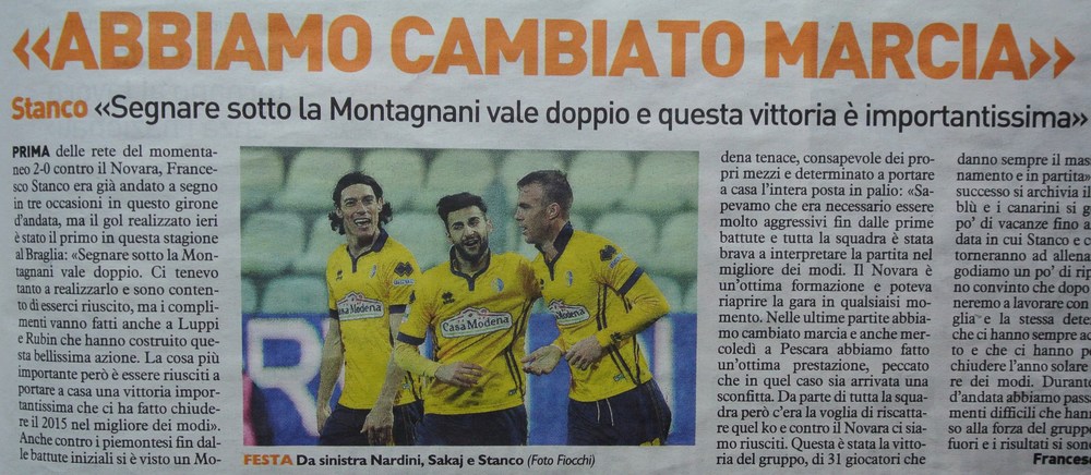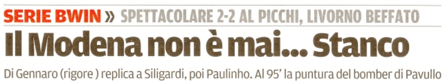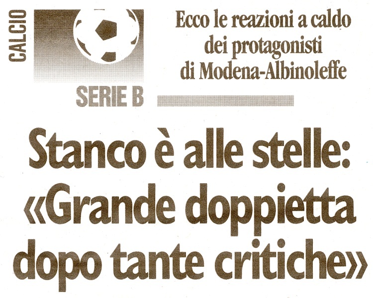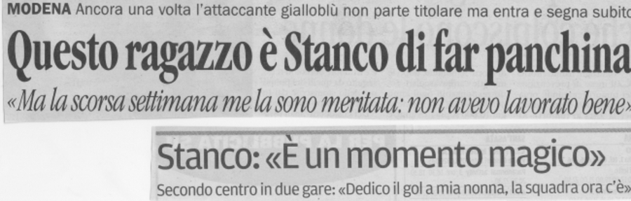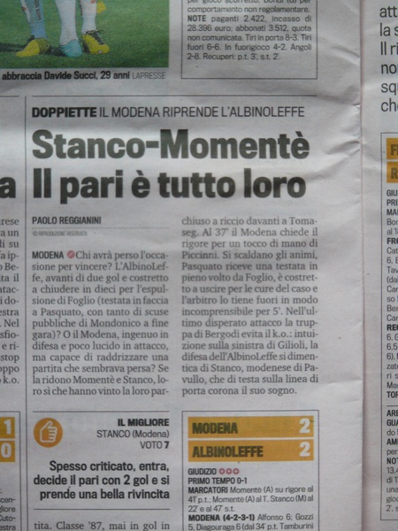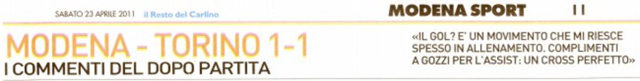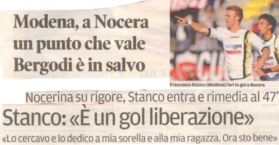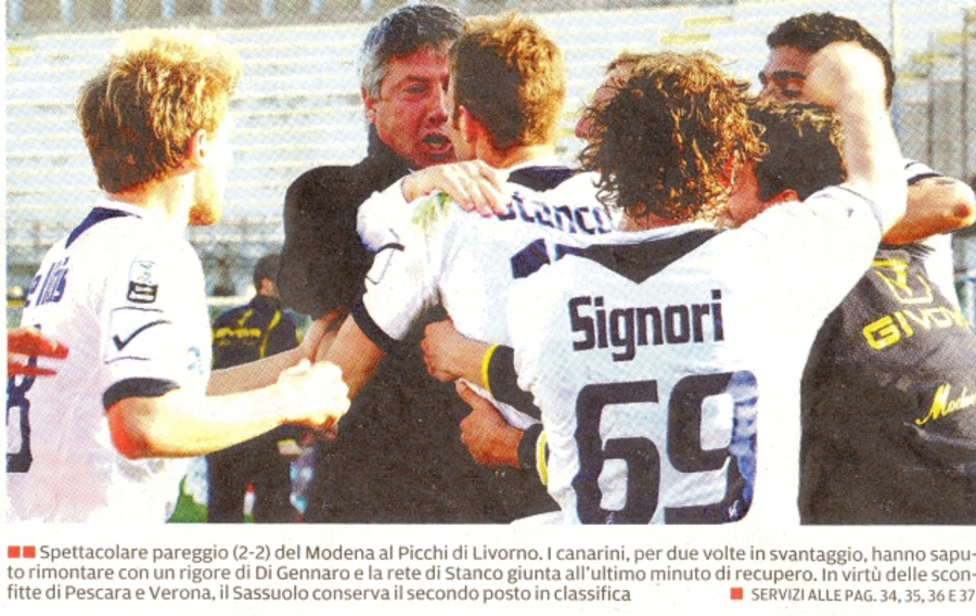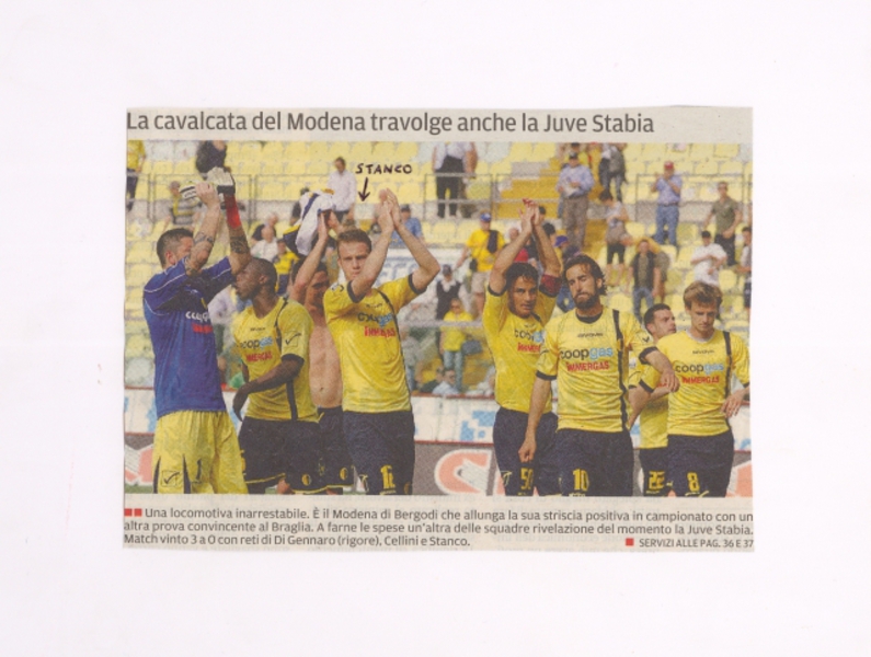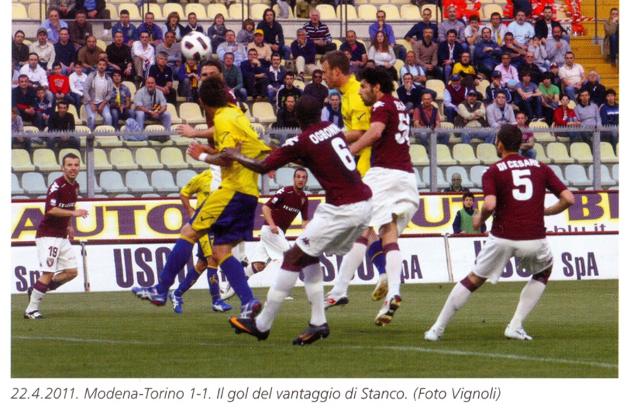 Da "Modena Football Club 1912-2012". Il goal di Stanco in Modena-Torino 1-1 del 22-04-2011.