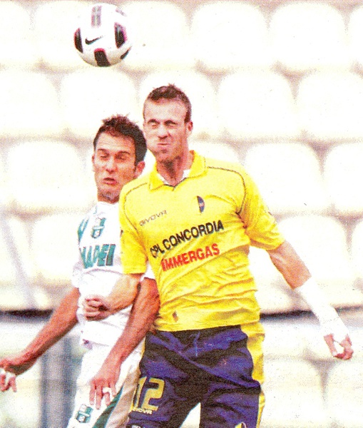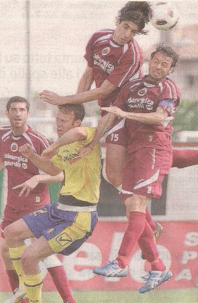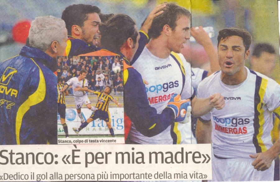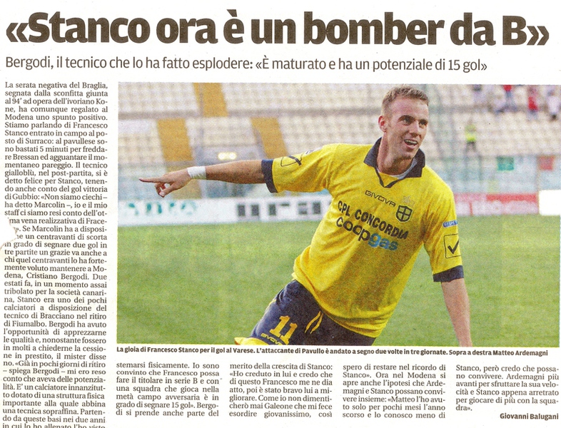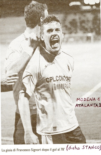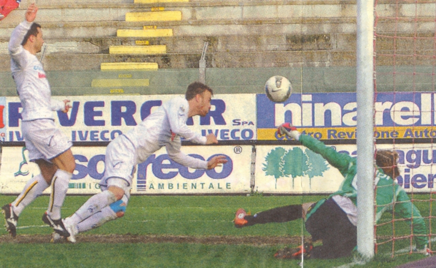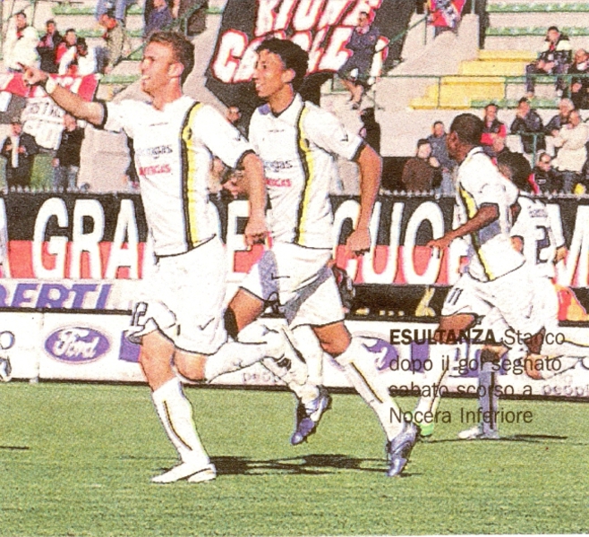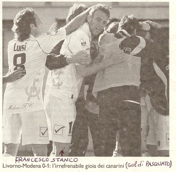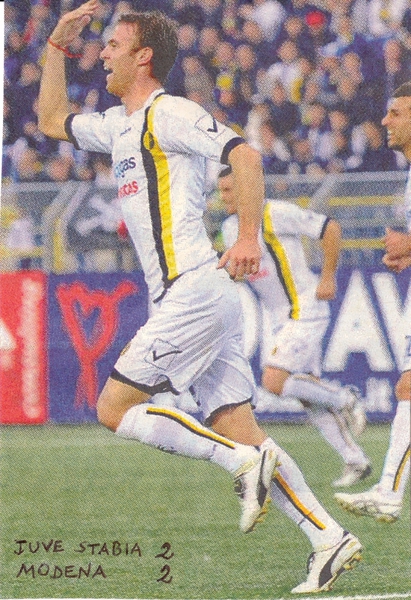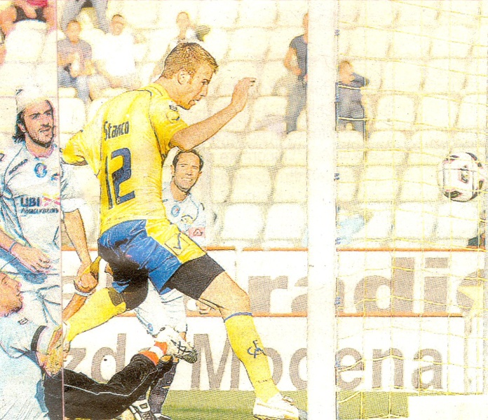 Francesco Stanco, con la maglia del Modena ( in completo celeste) segna la sua prima rete in serie "B" in Salernitama - Modena 2-1 (14-02-2009).