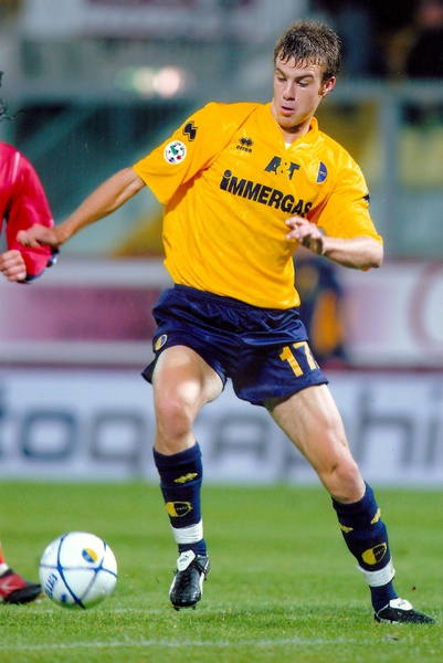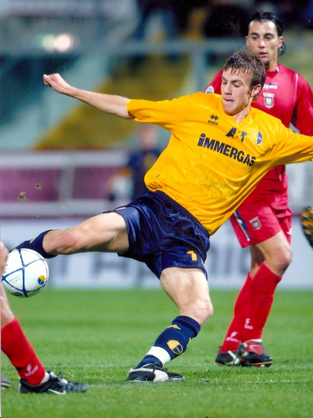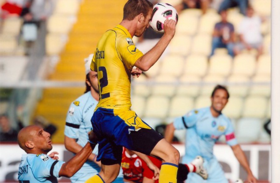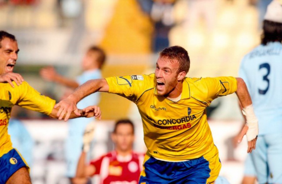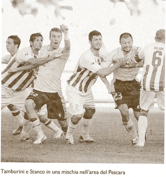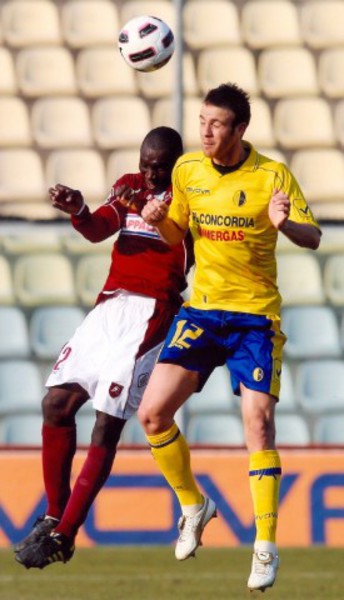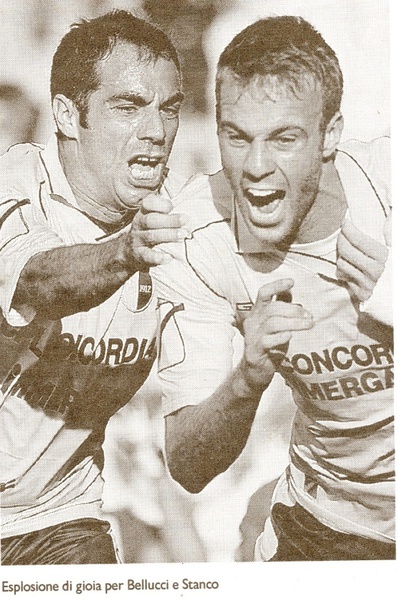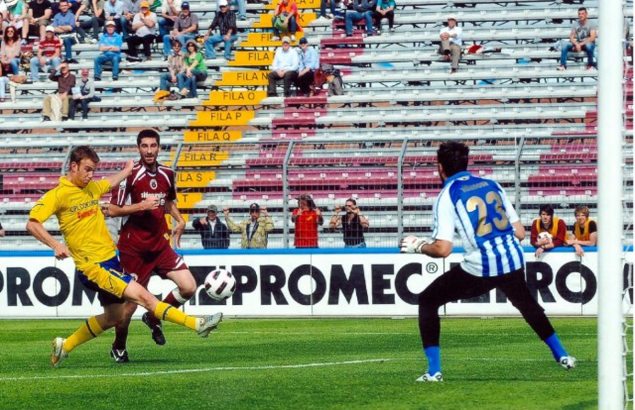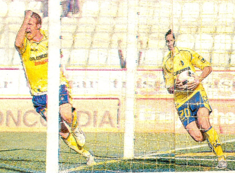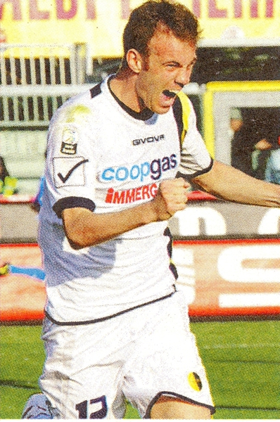 Francesco Stanco, con la maglia del Modena ( in completo celeste) segna la sua prima rete in serie "B" in Salernitama - Modena 2-1 (14-02-2009).