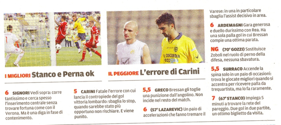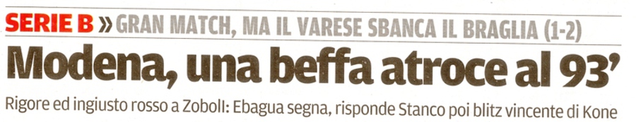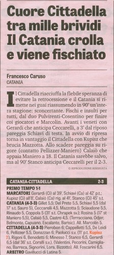 Catania-Cittadella 2-3 (maggio 2015) da "La Gazzetta dello Sport".