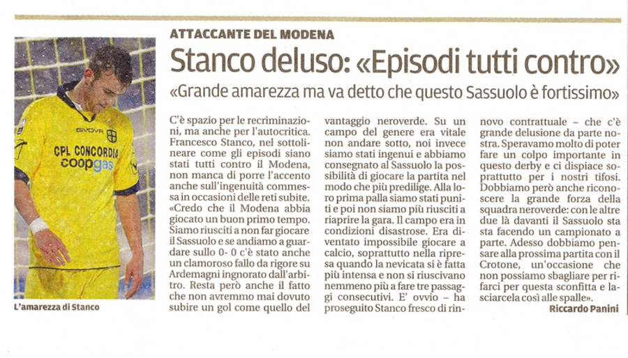 Sassuolo-Modena 2-0 (Dicembre 2012). Foto "Gazzetta di Modena".