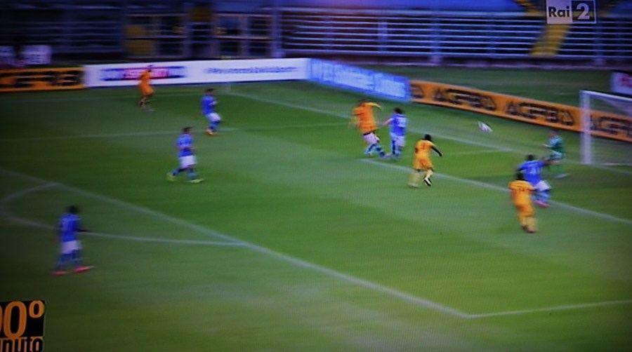 Stanco ribatte in rete inutilmente (il pallone aveva gia' varcato la linea di porta) la punizione di Di Gennaro, che aveva colpito la traversa.