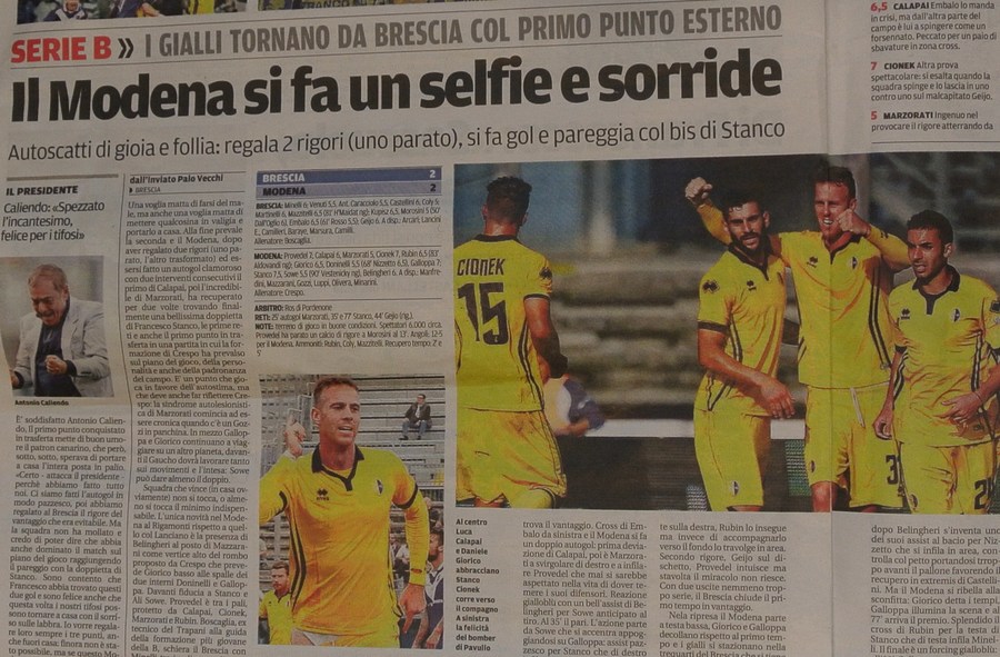 Brescia-Modena 2-2 (3 ottobre 2015). Doppietta di Francesco Stanco