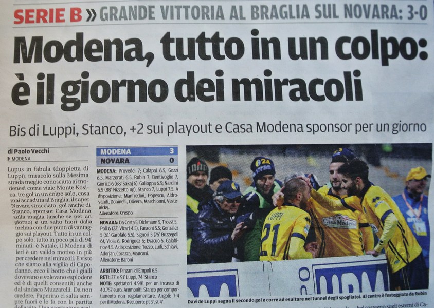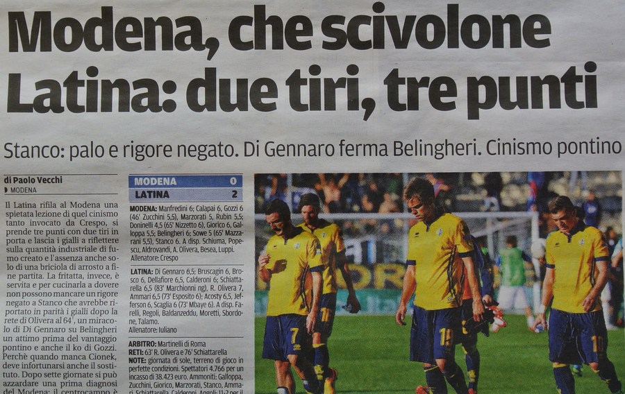 Modena-Cittadella 3-3 (Marzo 2013). Foto "Gazzetta di Modena".