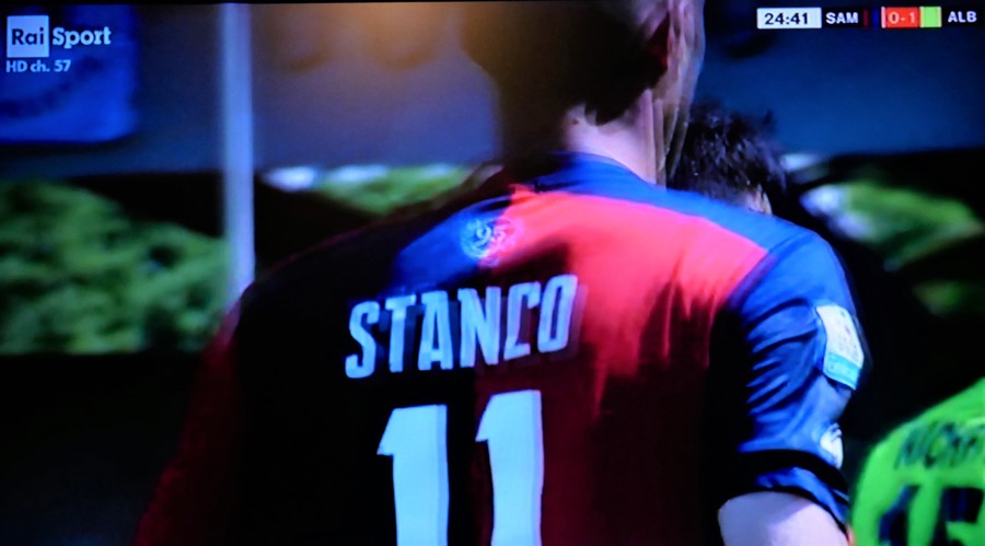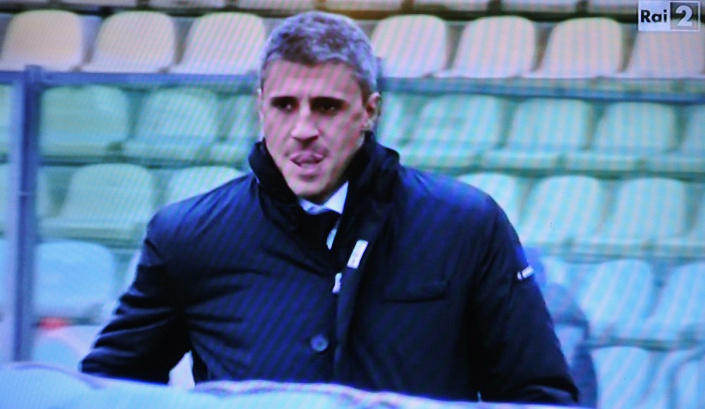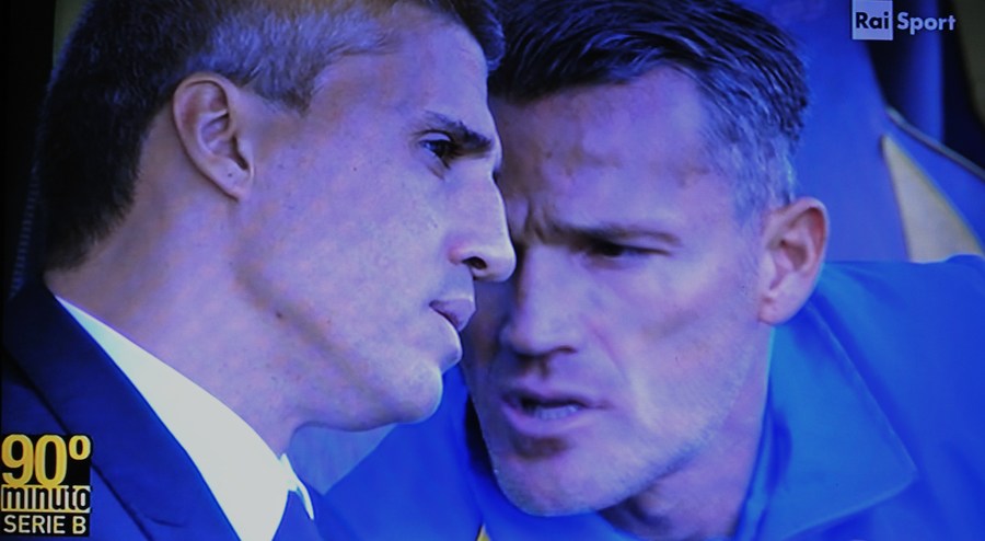 Primo piano televisivo di Francesco Stanco in Sambenedettese-Albinoleffe (serie C – aprile 2018) (da Rai Sport)