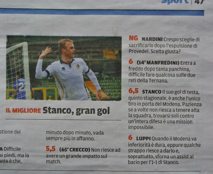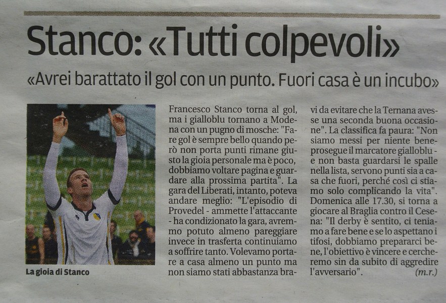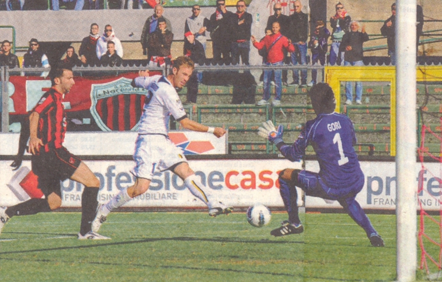 Ternana-Modena 0-1 (Settembre 2012). Il goal decisivo di Stanco. Foto "Gazzetta di Modena".