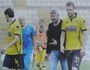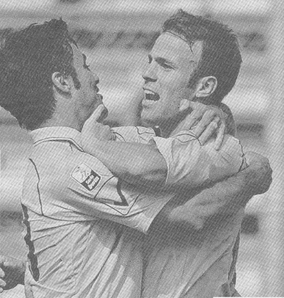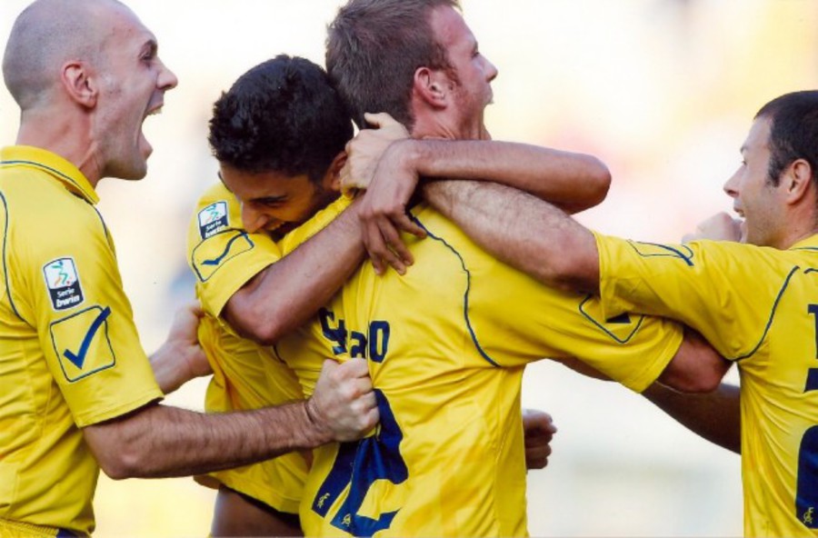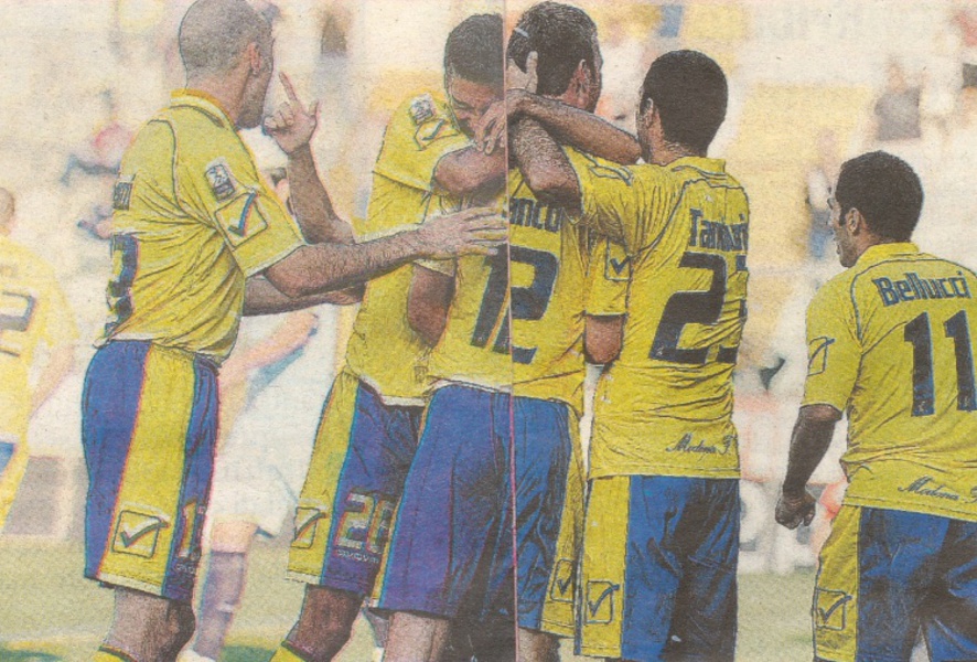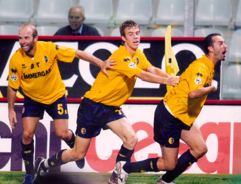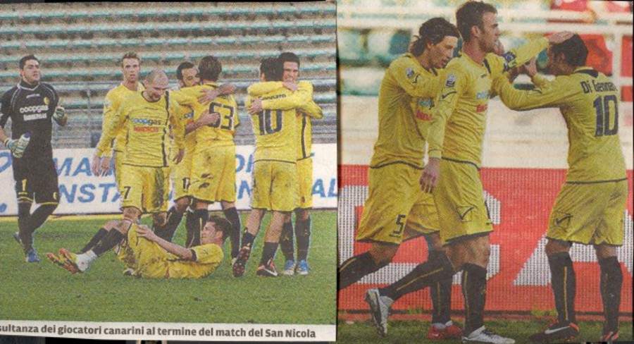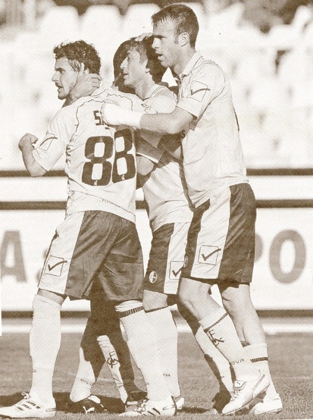 Francesco Stanco ( al centro ) con la maglia "canarina" del Modena F.C. 2005 - 2006, dopo un goal di Bucchi ( primo a destra )