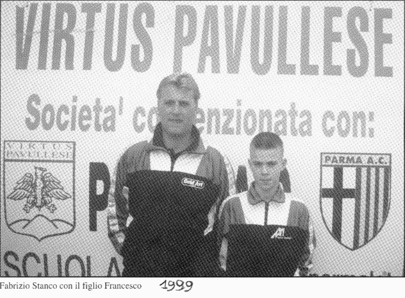 Francesco Stanco con le giovanili della Virtus Pavullese (marzo 1999) e con il padre Fabrizio, portiere della Virtus Pavullese in Quarta Serie