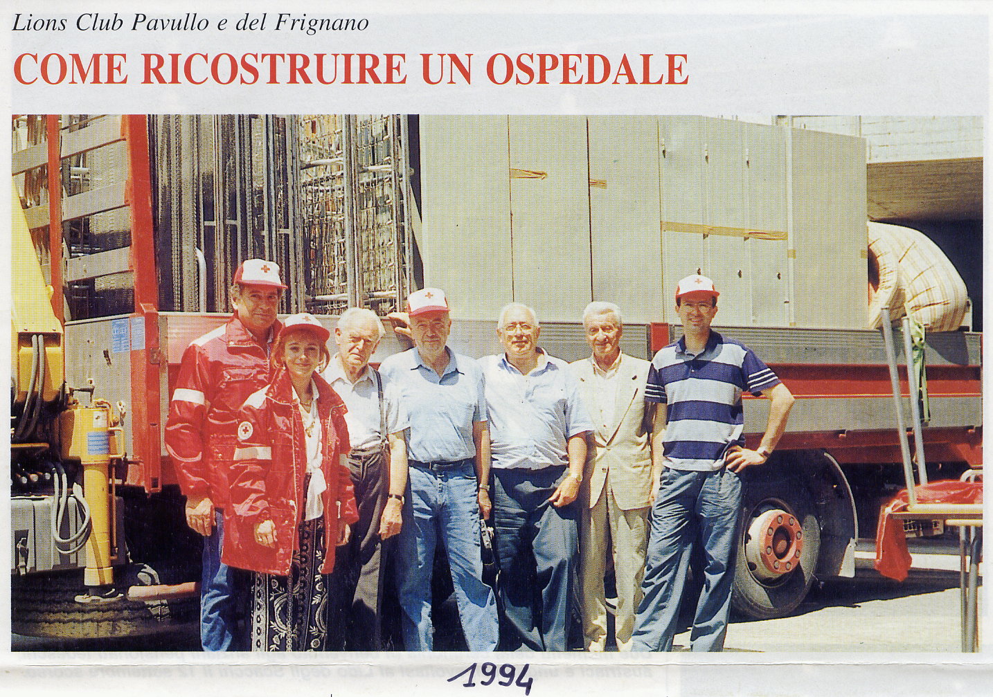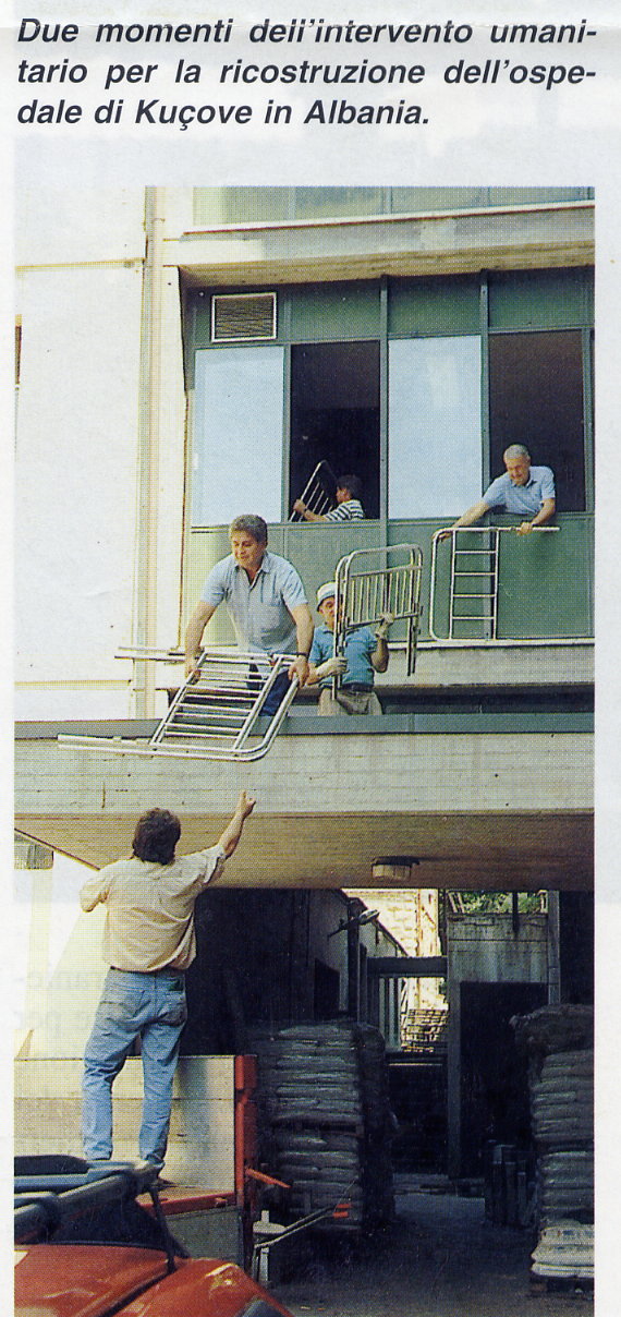 Si seppe che la Croce Rossa della Repubblica di San Marino partecipava alla ricostruzione dell’ospedale di Kucove, in Albania. Così, nel luglio ’94 furono realizzati il carico e la consegna delle attrezzature donate, corrispondenti a 70 posti letto e ad armadietti metallici, ai Delegati della Croce Rossa per il relativo inoltro a Kucove. Questo “service” fu dedicato al Socio Fondatore Dr. Cesare Palladini (“ragazzo del ’99”, Capitano degli Alpini e Cavaliere di Vittorio Veneto), da poco scomparso.